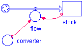 We need a stock, a flow and a converter. The converter is connected to the flow.