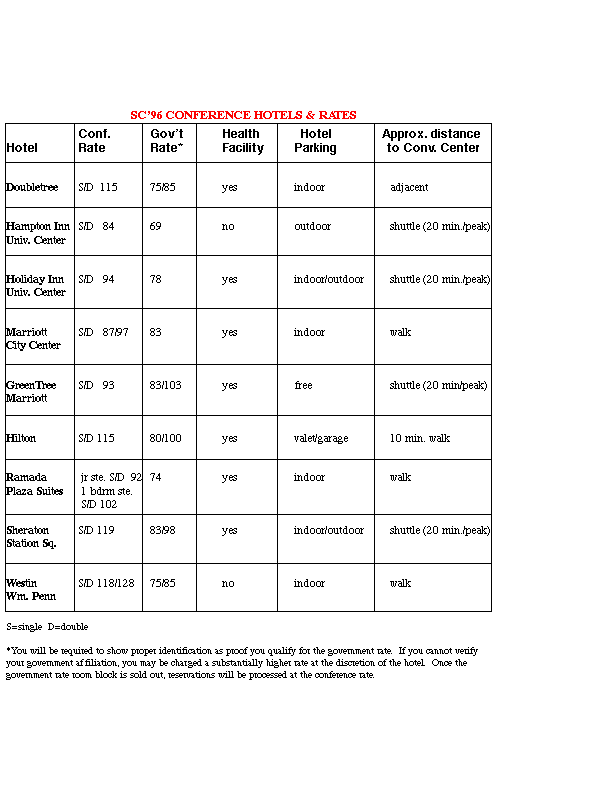 You may also make your hotel reservation via the Web at http://www.pittsburgh.net/supercomputing96/.